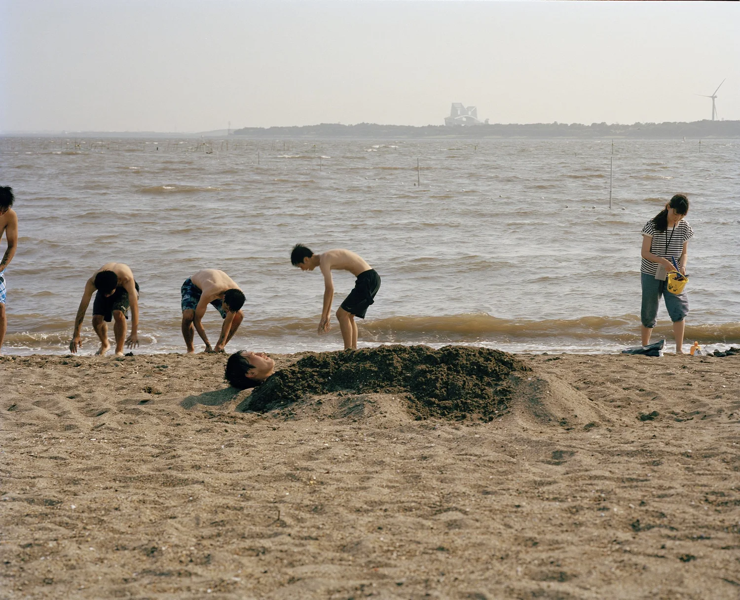 Although Tokyo‘s sometimes dystopian city beaches can hardly compete with the beaches of well-known water metropolises such as Rio de Janeiro, Los Angeles, Bar- celona, or even New York, the images in Gruzei‘s series convey the happiness of the moment of the people depicted and the need for recreation - in (artificial) nature.