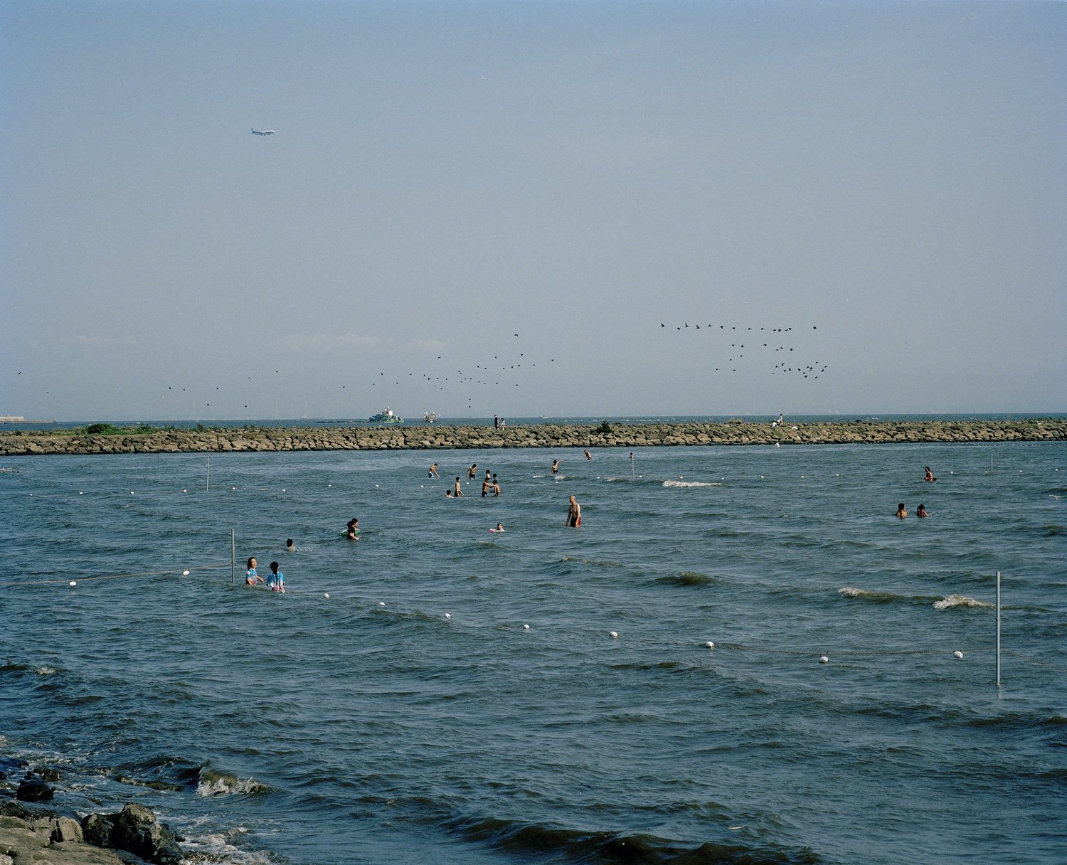 Leisure Landscapes shows a different Japan and examines two recreational areas in Tokyo Bay. They are among the few opportunities for citizens to swim in the sea within the city - with the water quality sometimes appearing questionable. The project refers, among other things, to the long tradition of bathing in Japan and includes images that can be reminiscent of traditional Japanese woodcarvings.