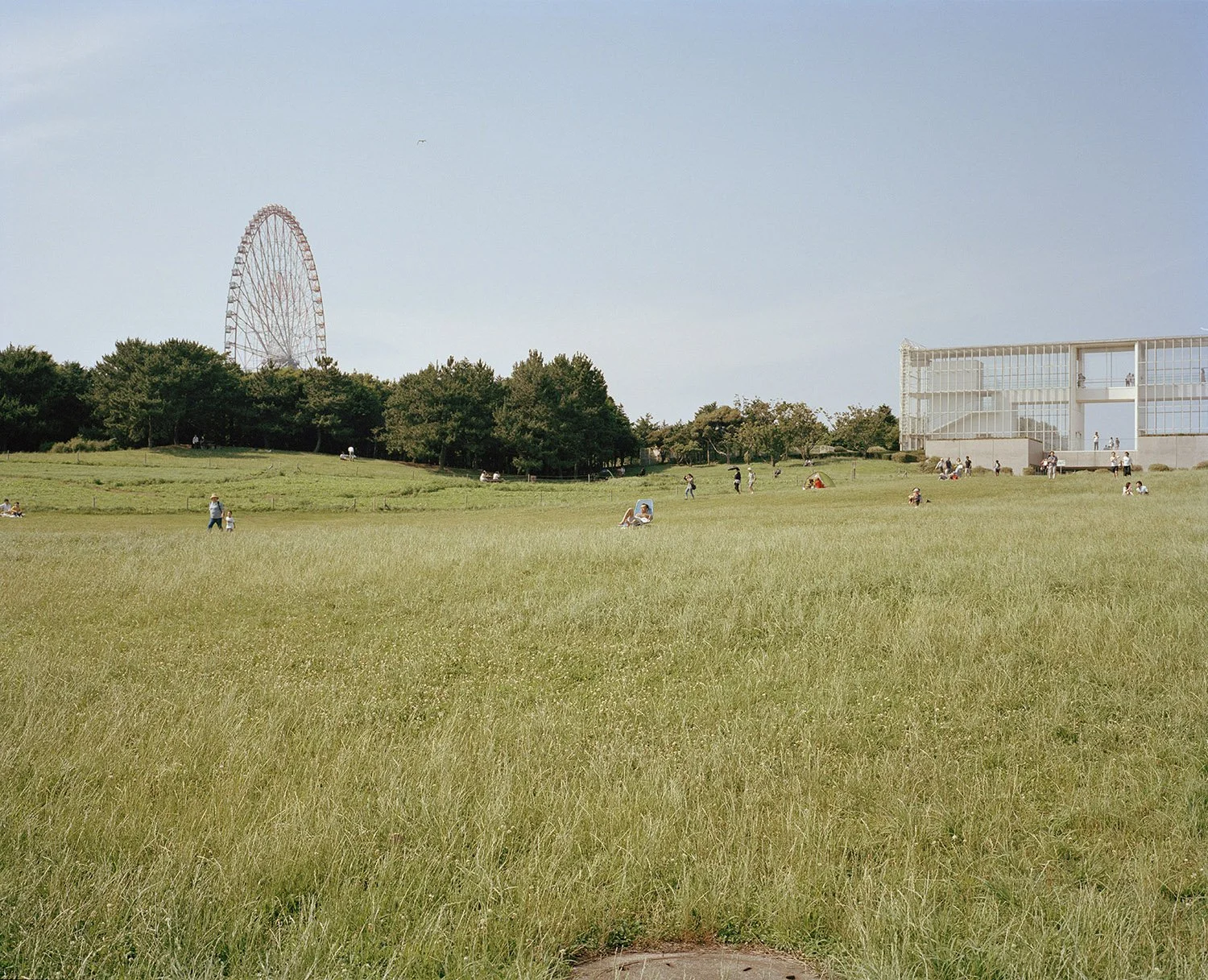 Leisure Landscapes is an analog photography project realized in Kasai Rinkai Park and Odaiba Island in Tokyo. Within a culture that is very work-oriented, it takes a closer look at places of recreation. The work ethic in Japan is both impressive and worrisome. Images of exhausted people sleeping in uncomfortable poses on public transportation or in the city shape our perceptions of Japanese culture, yet they are more than a mere cliché: the Japanese language even has a word for death from too much work - Karōshi.