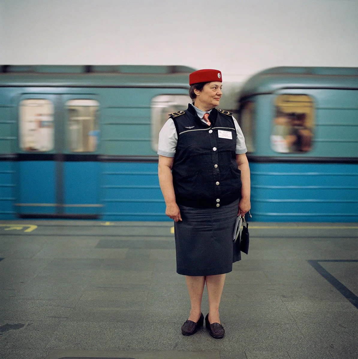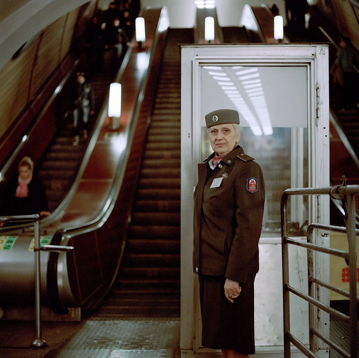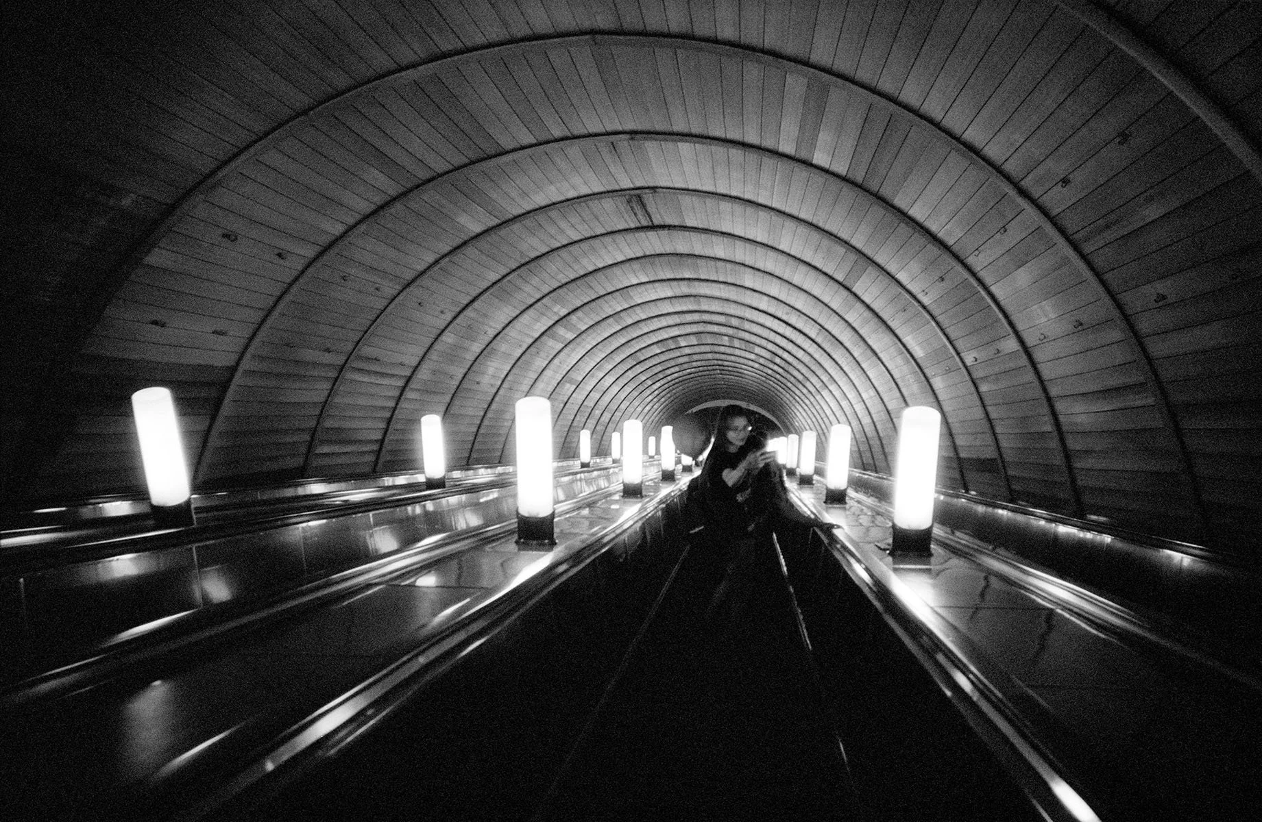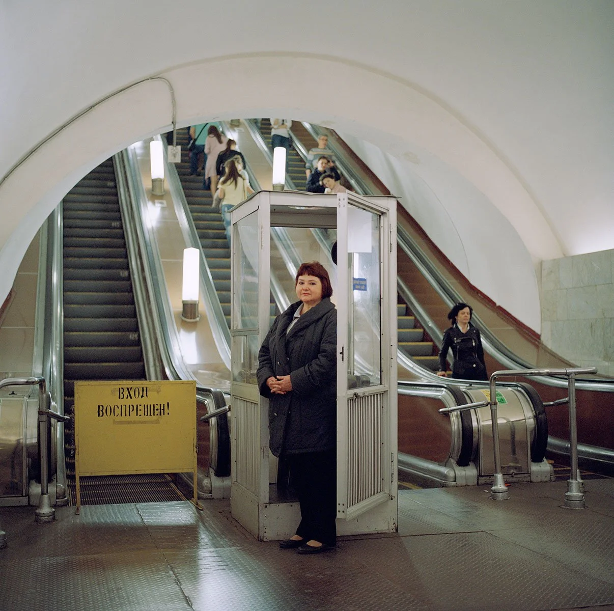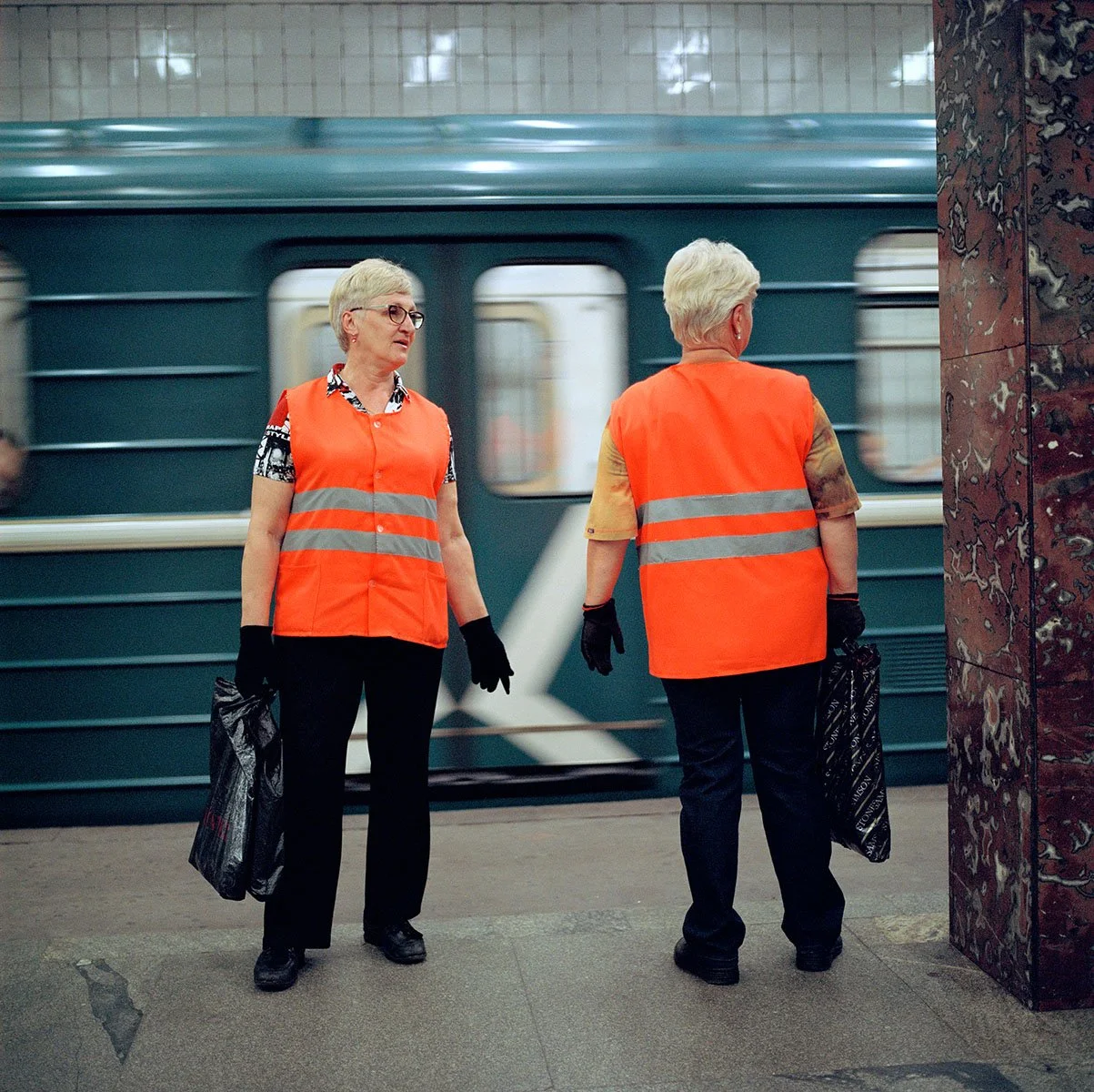 For this long-term project, the work of Katharina Gruzei explores the Moscow metro and its socio-political and historical implications. In this spirit, “Mir Metro” (Мир метро), Russian for “Metro World,” stands emblematically for the exploration of an everyday place beneath the city. While transit areas are frequently described as “non-places” in being transitory by nature, Moscow’s metro represents in fact its antithesis. Begun as a prestigious project of the USSR (the so-called “Palaces for the People”) and constructed simultaneously to serve as bunkers, Moscow’s metro has always been conceived as a place simply to be. To this day, it offers a habitat wherein socio-political tendencies have always been evident. Katharina Gruzei takes a kaleidoscopic look at this semi-public space and weaves her series of photographs into a journey through space and time.