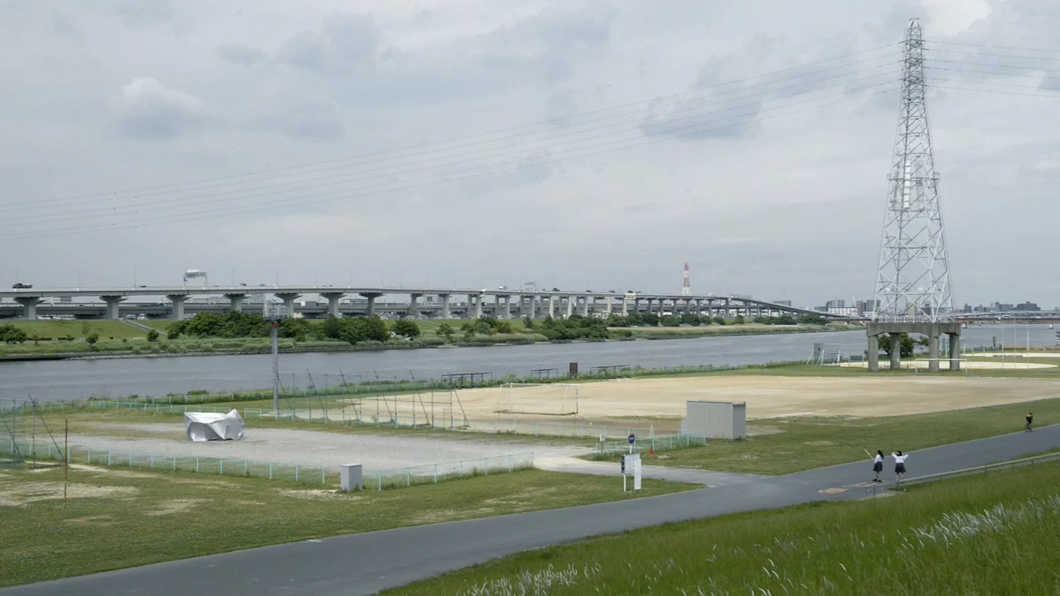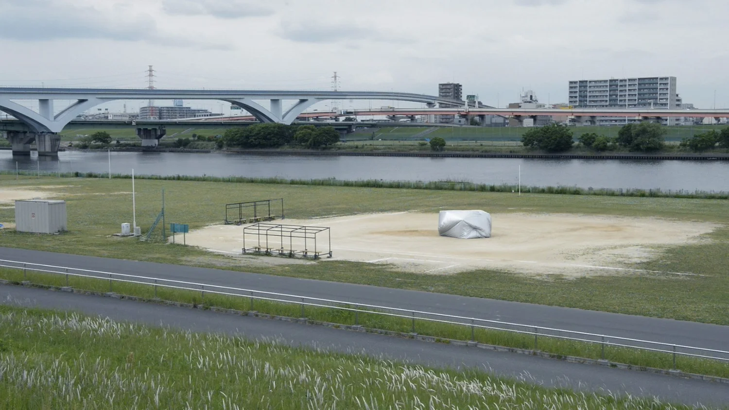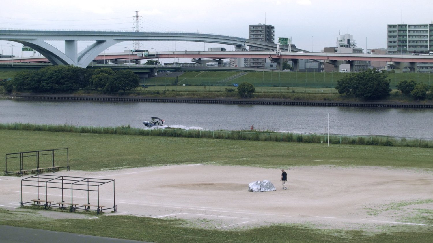 The establishing shot of the video shows a densely built urban landscape, which is contrasted by a concrete and fenced open space in the foreground. The area around a river in Tokyo is the scene of a strange phenomenon. An indefinable silver mass begins to move and seems to inflate from within. The wafting sculpture, which at times reminds of an organic body, then again acts like an architectural element, grows and in the next scene decays again to a small wrinkled accumulation on the ground. The erection and collapse of this foil takes us to four places whose apocalyptic mood is enhanced by sound. Silver foils that are used for covering cars, bikes and motorcycles are commonly seen in the streets of Tokio. Urban Reflectors picks up on this appearance and the Japanese culture of wrapping and packing, which can also be read as an act of caring. Being part of the everyday life in Tokio, the intervention in public space is only discovered by few passersby.