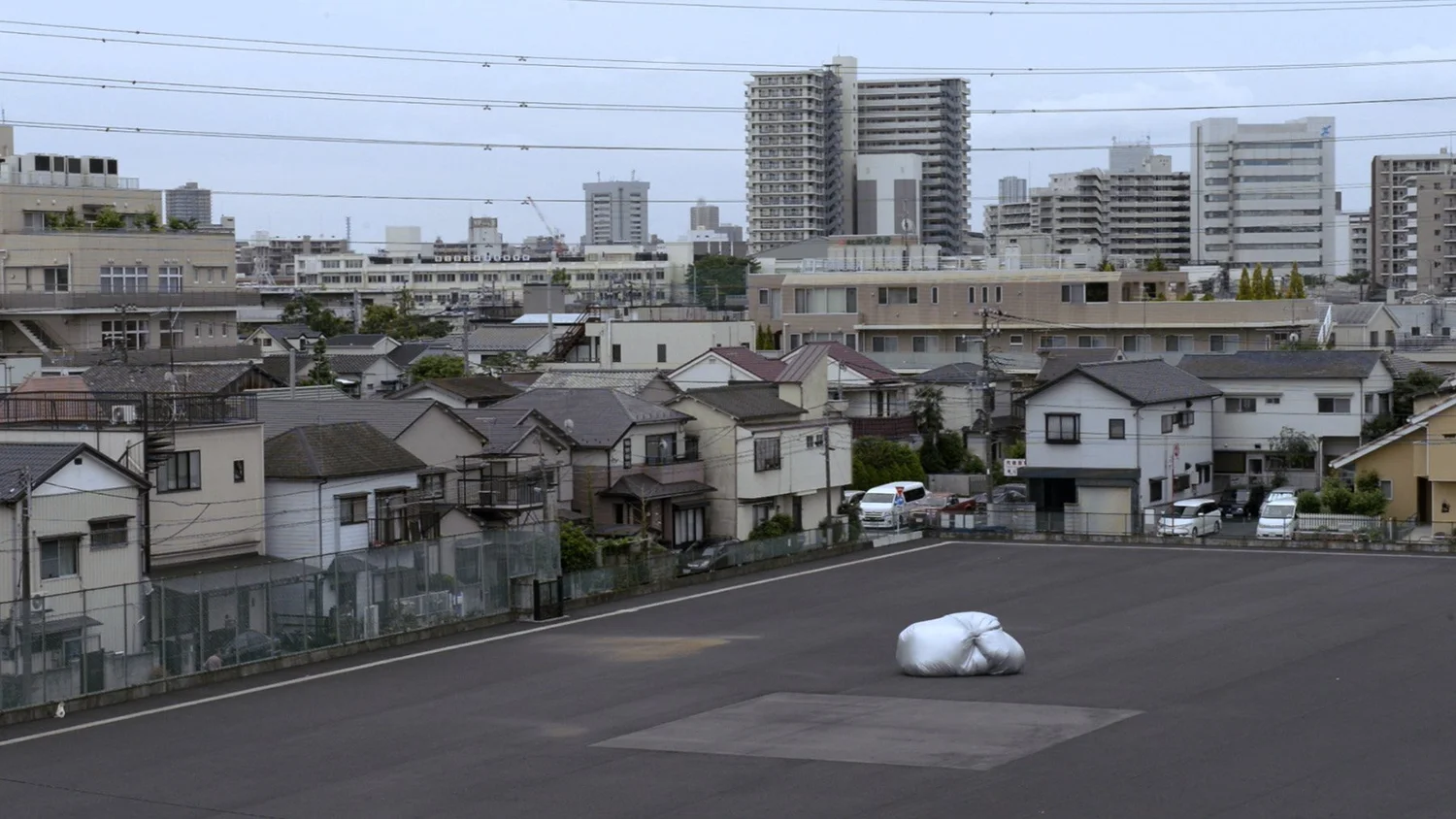 The narration is embedded in places that contrast with the stereotypes of Tokyo as a metropolis of millions. Accompanied by a dystopian sound, the video creates an apocalyptic mood that raises questions about the nature of public space and its use. Due to its geographical location, Japan is permanently threatened by natural forces and has developed comprehensive disaster control measures. Nationwide installed loudspeakers in the public area are intended to inform the urban population in the event of a disaster. But they are also used in everyday life, for example, to warn children before dusk to return home. As a basis for the sound of the video, field recordings were used with recordings of these public announcements. A voice speaking from "off" in public space moreover has the bitter connotation of authoritarian systems or dictatorships and corresponds to the human bodies that act as mobilizers of the in- and deflating silver form. The Japanese announcement is initially not translated, but used as a means of sound design and only made comprehensible at the end with subtitles.